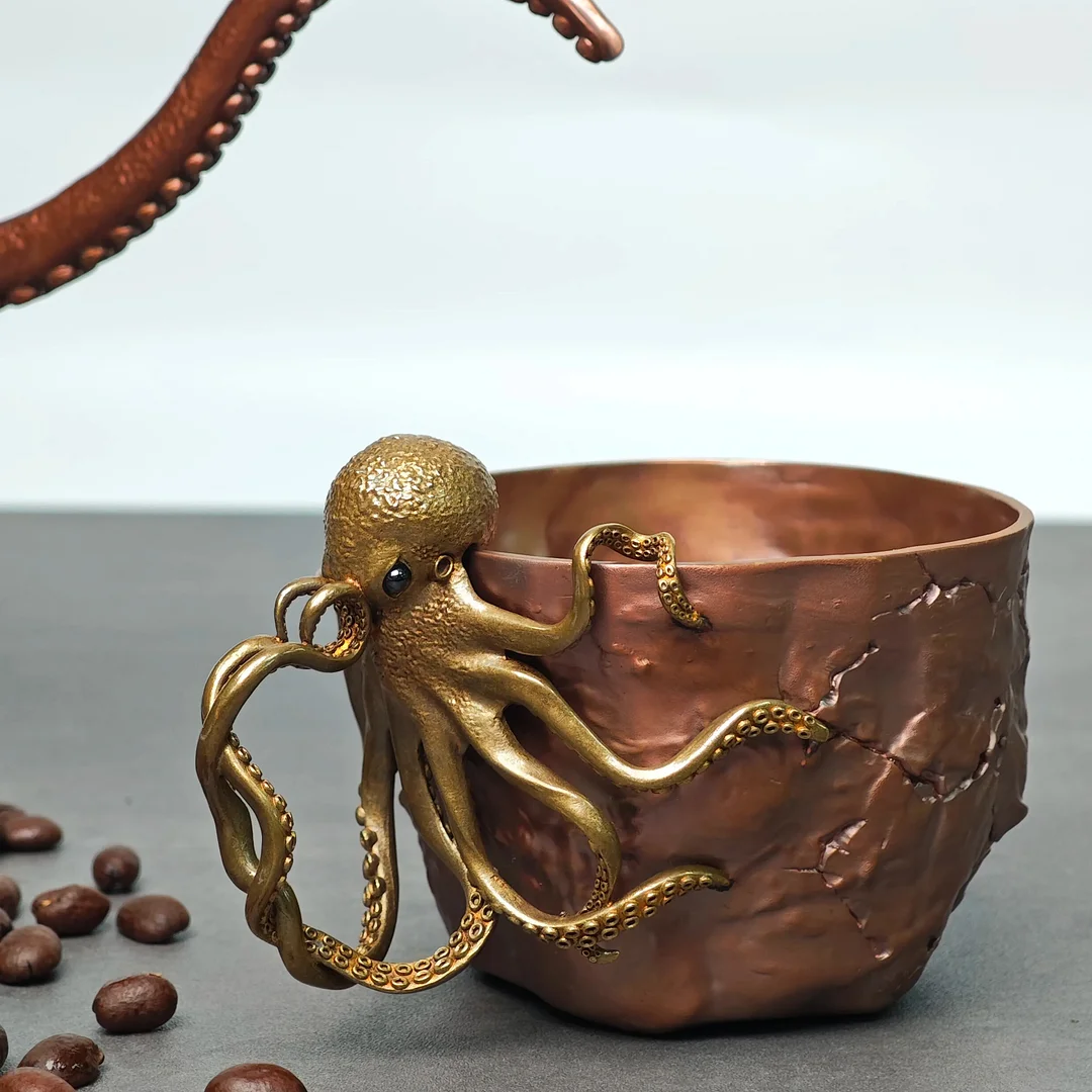 The hand-carved golden octopus is lifelike, its tentacles entwined around the cup body, creating a dynamic and artistic aesthetic, as if fresh from the deep sea. Intricate details like the octopus's eyes create a visual focal point, breaking the monotony of conventional cups and transforming them into a tabletop art piece. Enjoying coffee feels like interacting with marine life.