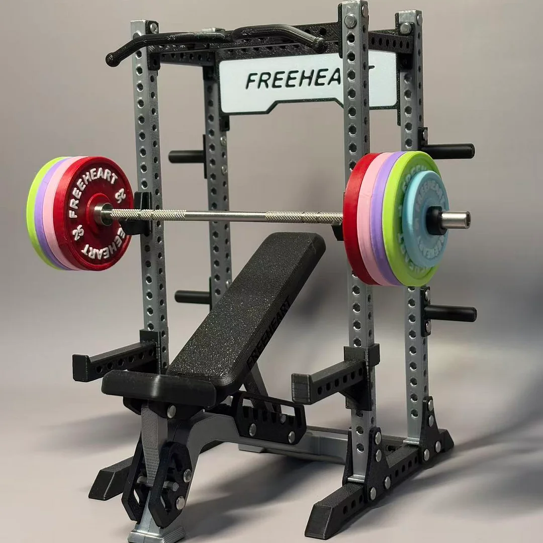 Based on a real professional squat rack, the structure and form are precisely replicated. From the sturdy frame and adjustable safety bar to the realistic barbell and colorful (or metallic) weight plates, every detail is meticulously crafted, creating a miniature gym experience, allowing you to directly experience the mechanical beauty and professional aura of fitness equipment.