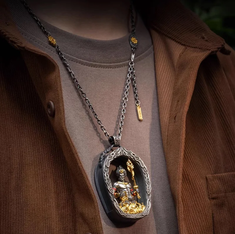 Based on the Acala, a symbol of "fearlessness and protection" in Tibetan Buddhist culture, the traditional guardian image is integrated into modern design. Acala implies a strong heart of compassion and the removal of demons and obstacles. It is the spiritual sustenance of many people seeking inner strength and peace. This profound cultural heritage makes the pendant not only an ornament, but also a carrier of faith and courage.