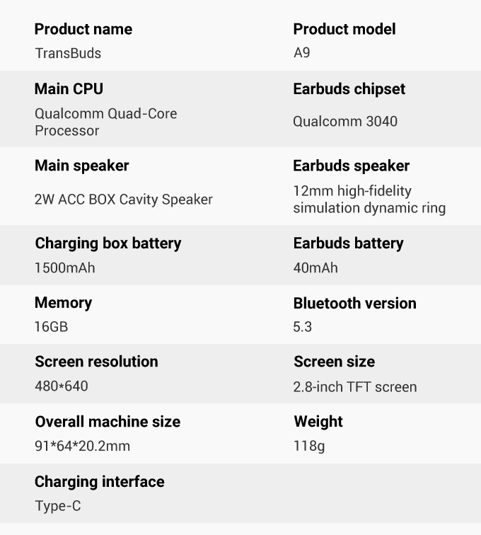 At the heart of the A9 lies the Qualcomm quad-core chipset, which drives its translation capabilities, ensuring both speed and stability. With translation speeds of under 0.5 seconds and an impressive 98% accuracy rate, the A9 operates efficiently while maintaining low power consumption. This ensures uninterrupted performance, offering users a seamless and reliable translation experience.